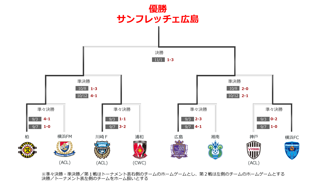 ついに決勝戦まで上り詰めた。決勝の相手はサンフレッチェ広島である。リーグ戦では2戦とも引き分けに終わり、決着をつけるのにふさわしい舞台が整った。